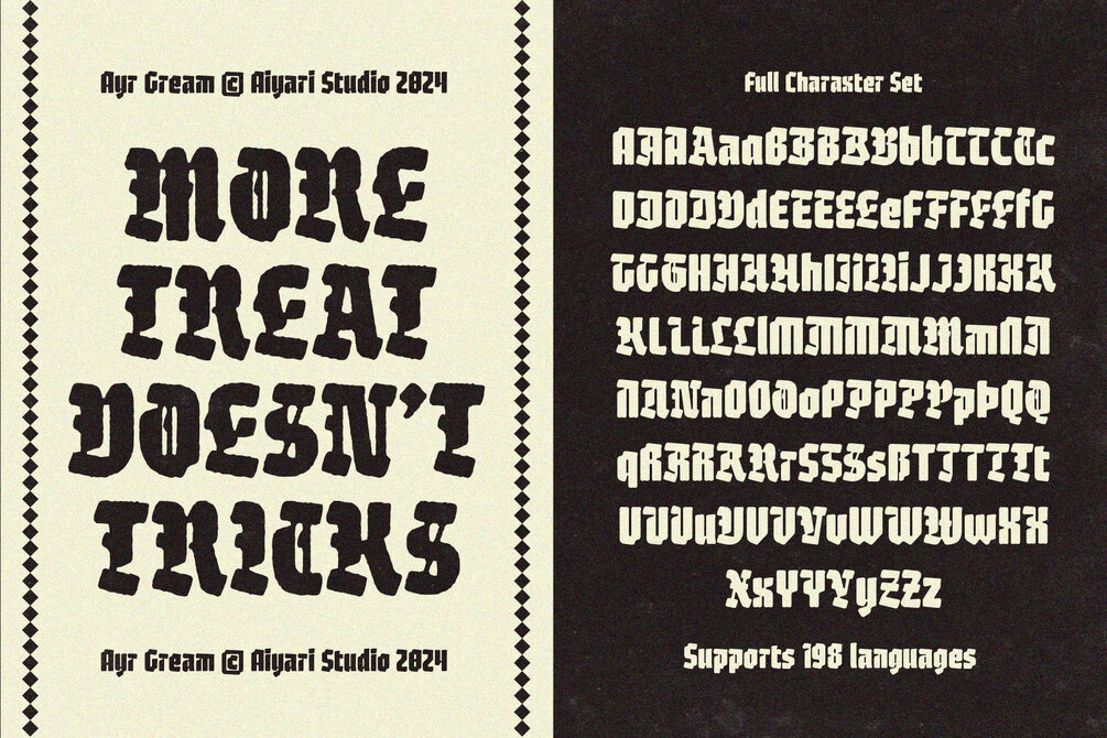 Introudicng Gream combines modernism with the playful curves of round shapes. By blending sharp, angular edges with soft, rounded forms, Gream redefines Blackletter in a fresh and contemporary way.
