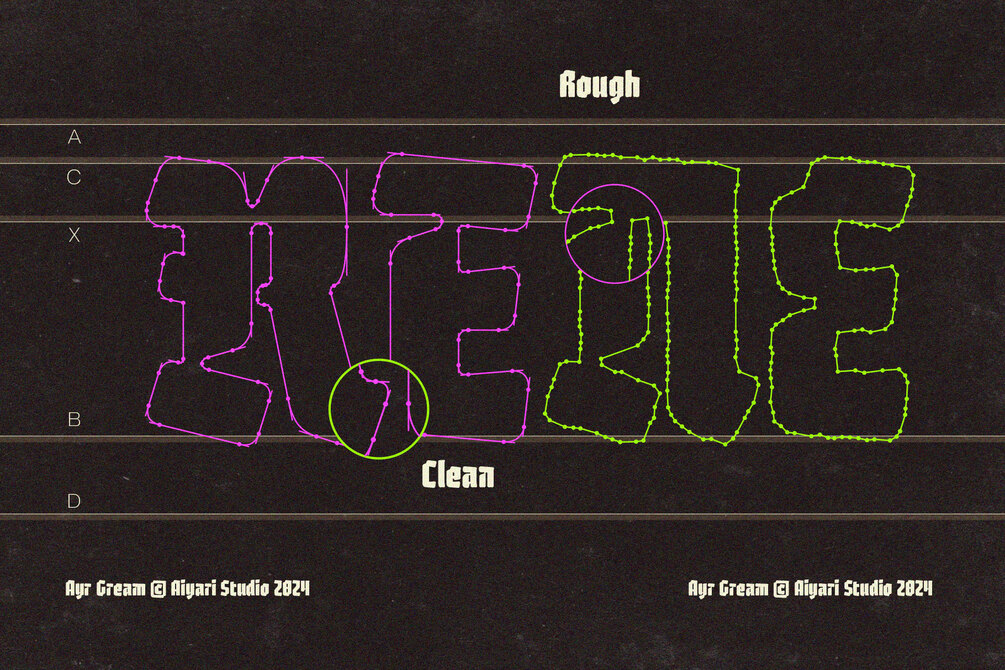 Introudicng Gream combines modernism with the playful curves of round shapes. By blending sharp, angular edges with soft, rounded forms, Gream redefines Blackletter in a fresh and contemporary way.