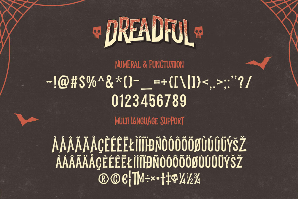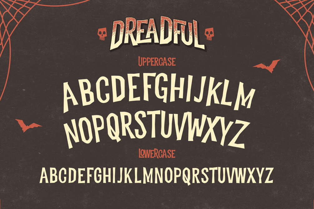 Dreadful typeface best uses for headings, Logo type, quotes, apparel design, invitations, flyer, poster, greeting cards, product packaging, book cover, printed quotes, cover album, movie, etc.